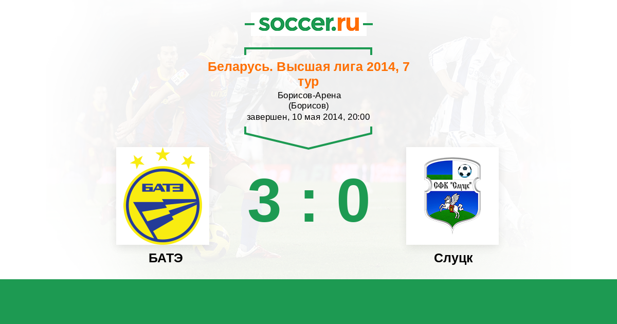 Беларусь. Высшая лига 18.07.2014 Слуцк Логотип футбольный клуб Слуцк 1:3 Логотип футбольный клуб БАТЭ (Борисов) БАТЭ