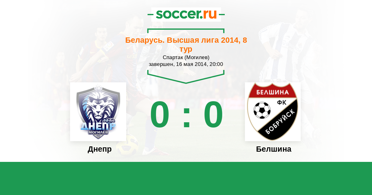 Беларусь. Высшая лига 02.08.2014 Белшина Логотип футбольный клуб Белшина (Бобруйск) 0:0 Логотип футбольный клуб Днепр (Могилев) Днепр
