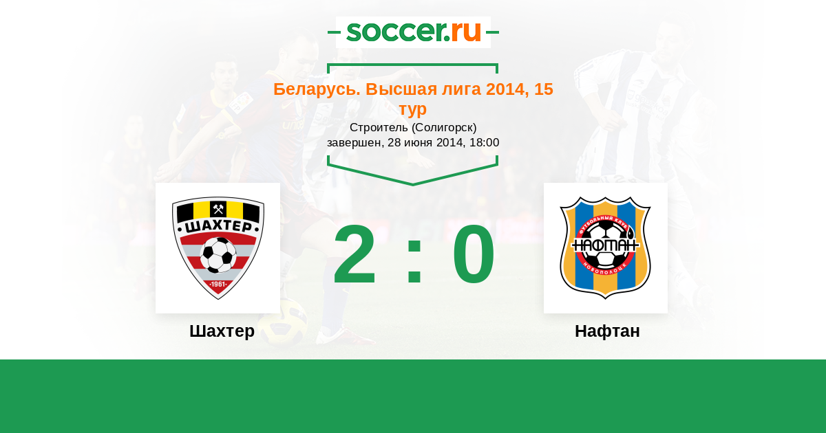 Беларусь. Высшая лига 15.06.2013 Шахтер Логотип футбольный клуб Шахтер (Солигорск) 2:0 Логотип футбольный клуб Нафтан (Новополоцк) Нафтан
