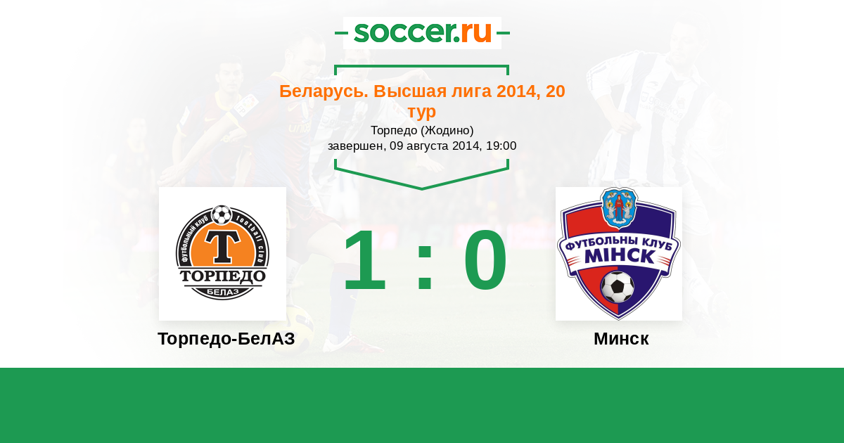 Беларусь. Высшая лига 26.05.2014 Минск Логотип футбольный клуб Минск 0:2 Логотип футбольный клуб Торпедо-БелАЗ (Жодино) Торпедо-БелАЗ