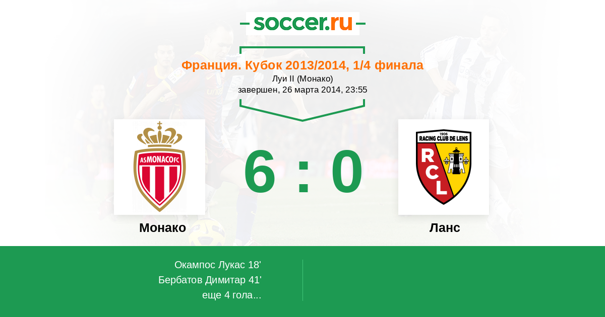Протокол матча Монако против Ланс