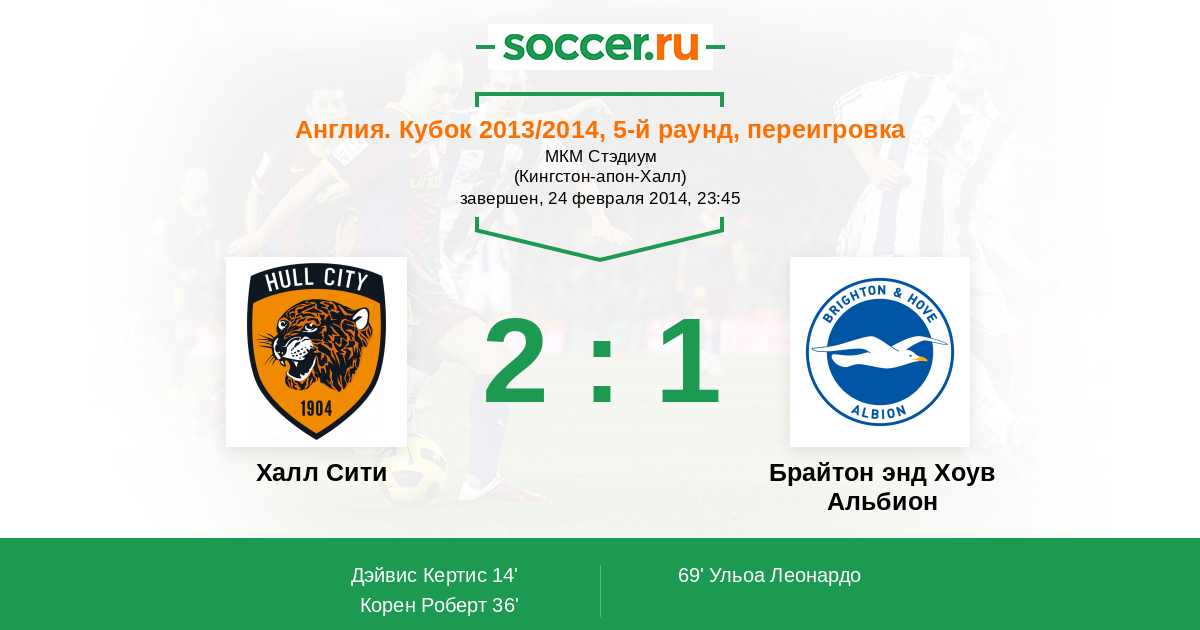 Протокол матча Халл Сити против Брайтон энд Хоув Альбион
