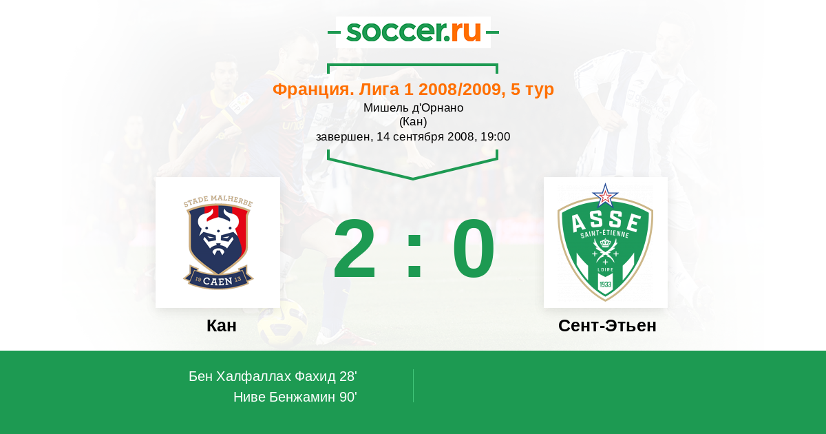 Протокол матча Кан против Сент-Этьен