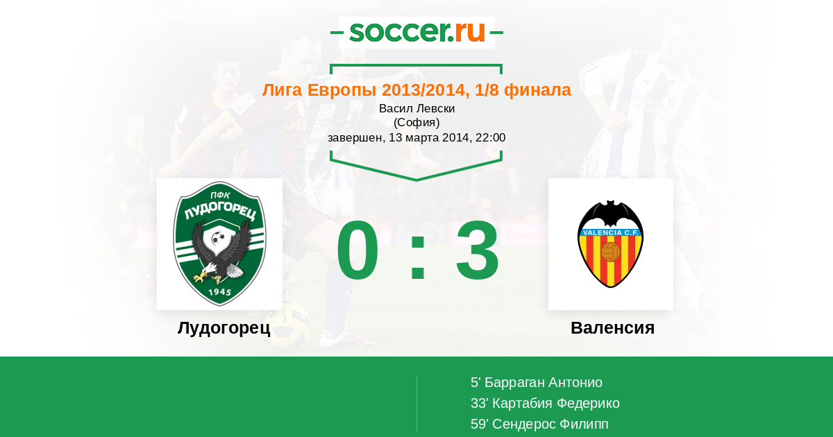 Протокол матча Лудогорец против Валенсия