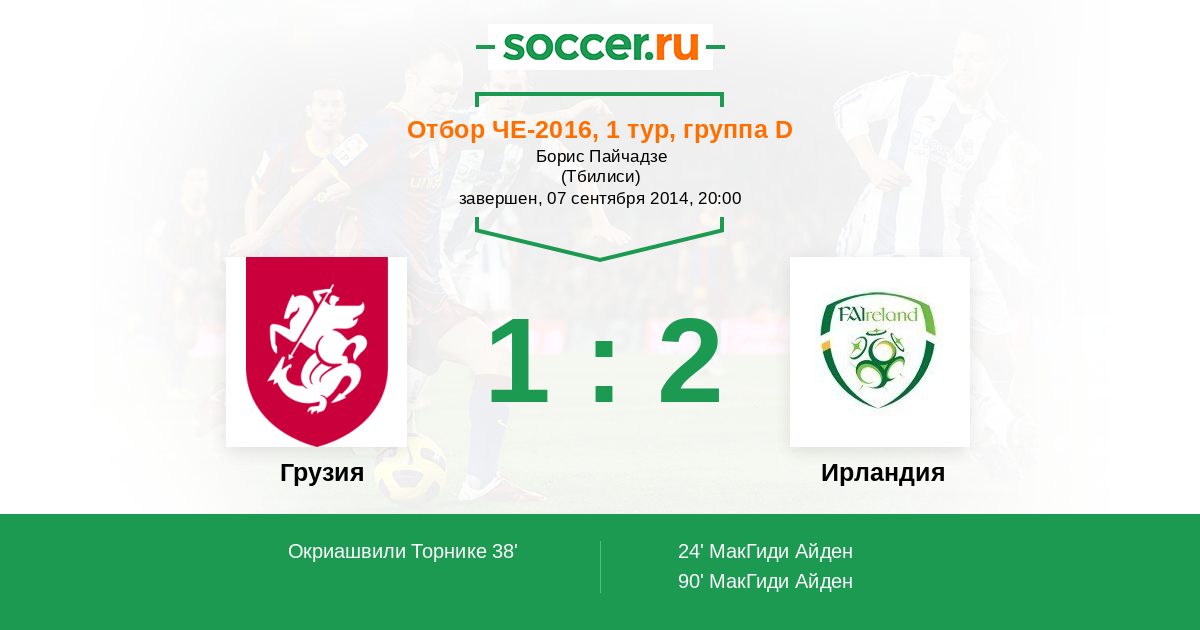 Протокол матча Грузия против Ирландия