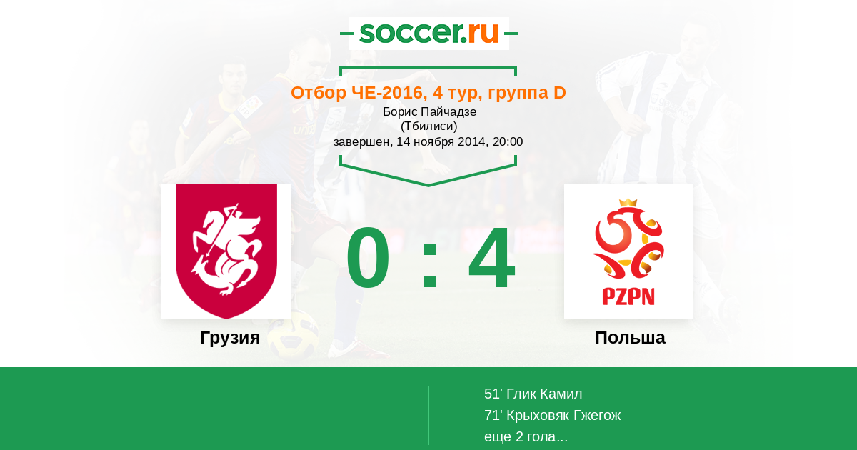 Протокол матча Грузия против Польша