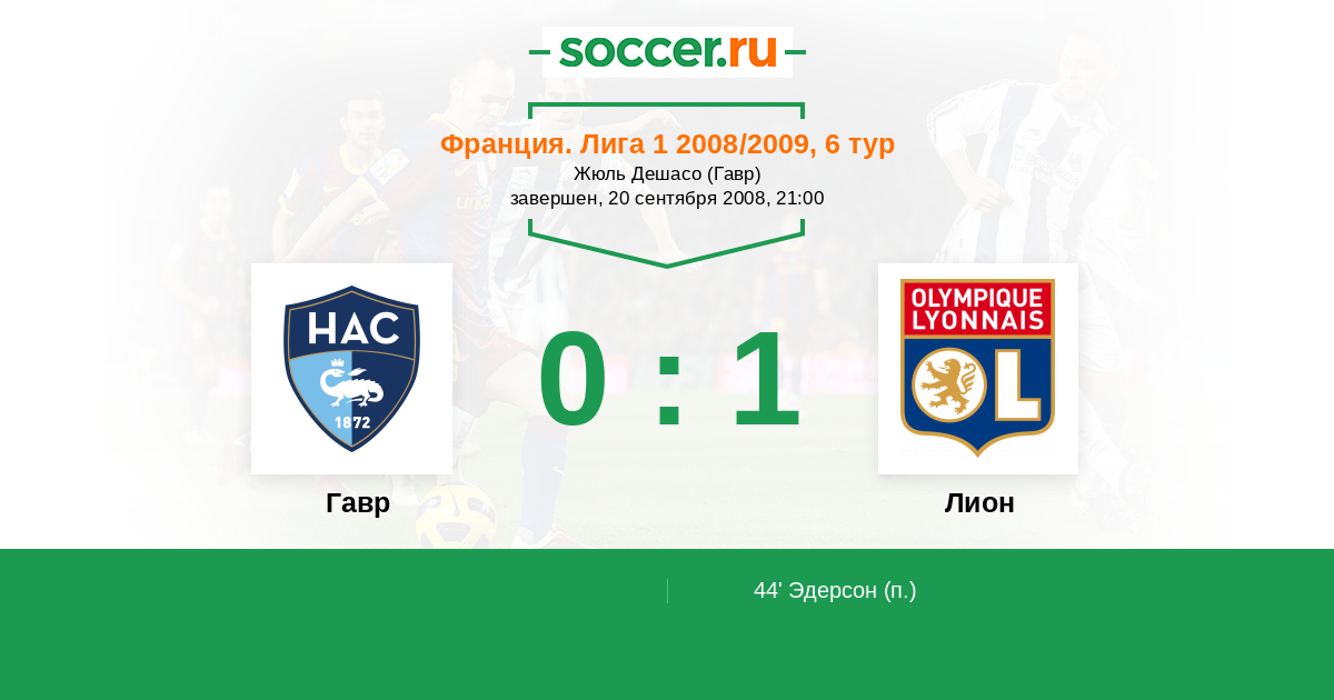 Протокол матча Гавр против Лион