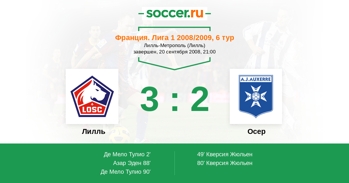 Протокол матча Лилль против Осер