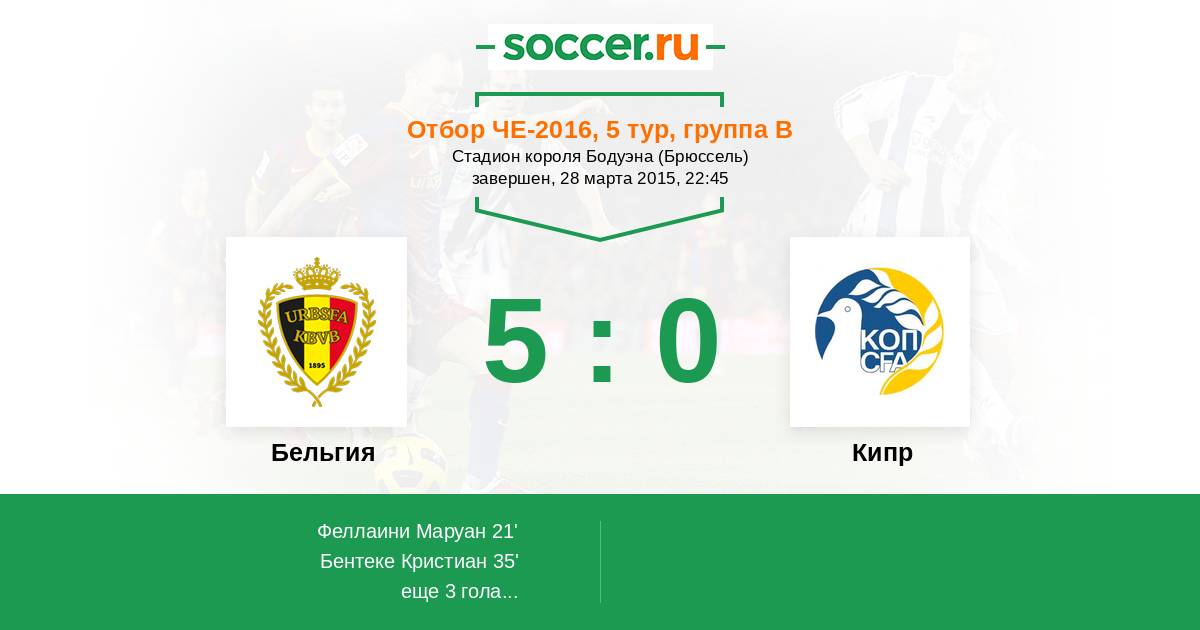 Протокол матча Бельгия против Кипр