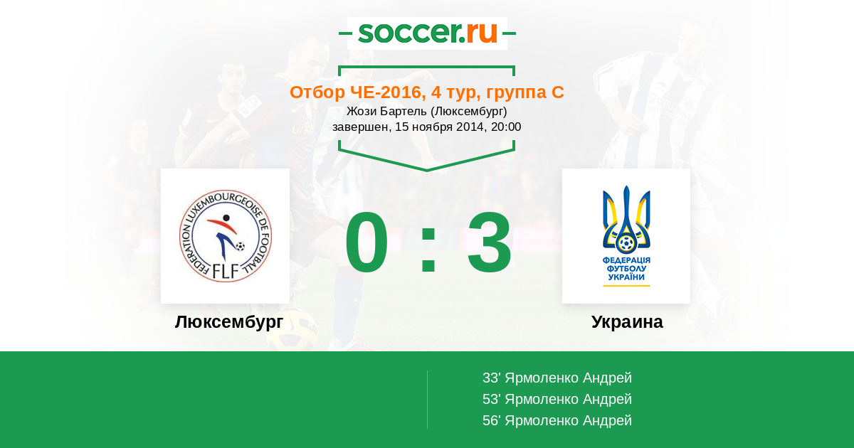 Протокол матча Люксембург против Украина