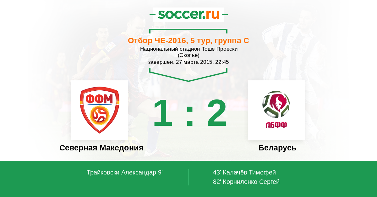 Протокол матча Северная Македония против Беларусь