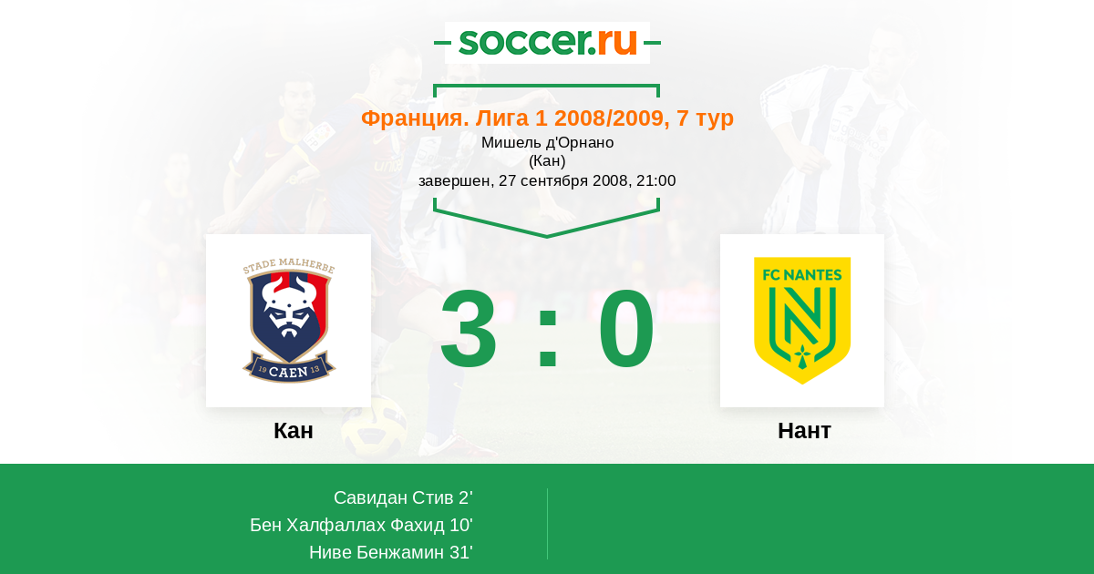 Протокол матча Кан против Нант