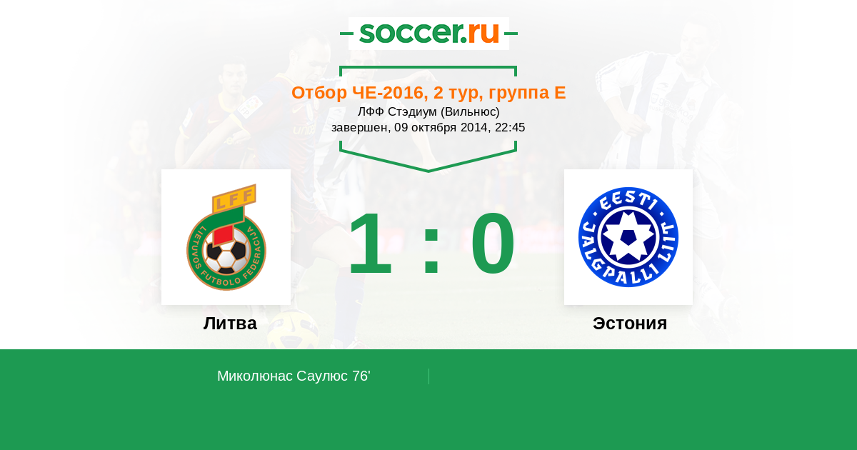 Протокол матча Литва против Эстония