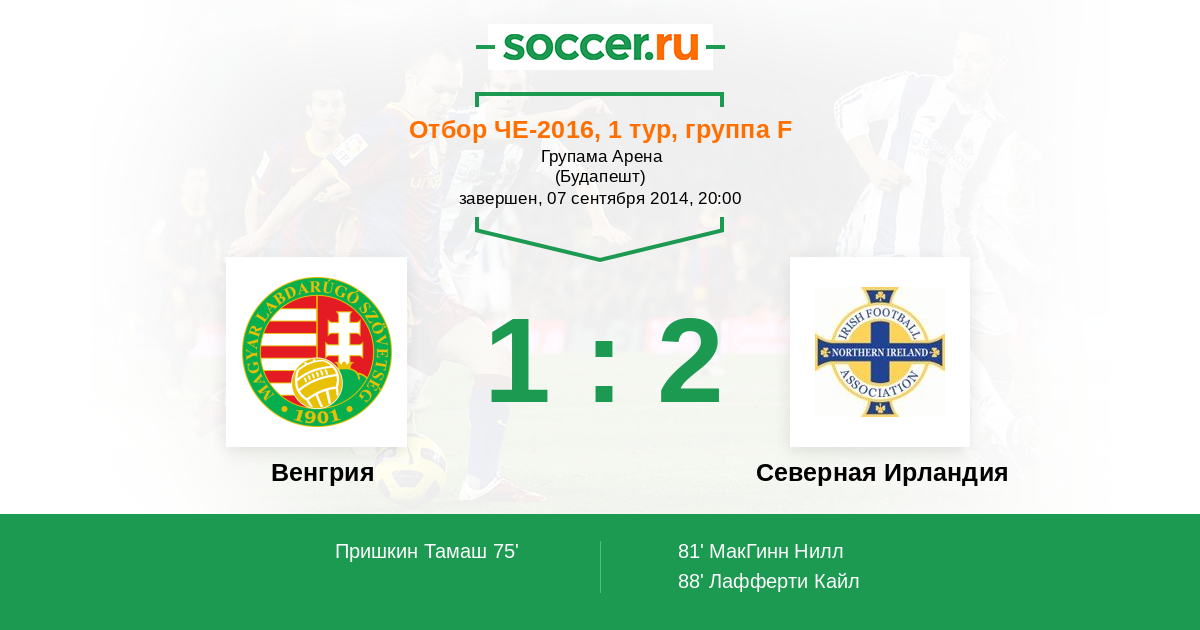 Протокол матча Венгрия против Северная Ирландия