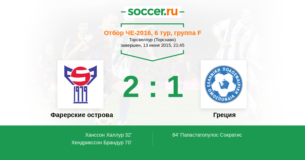 32' (1:0) Ханссон Халлур (6) (Ватнамар Солви (14))