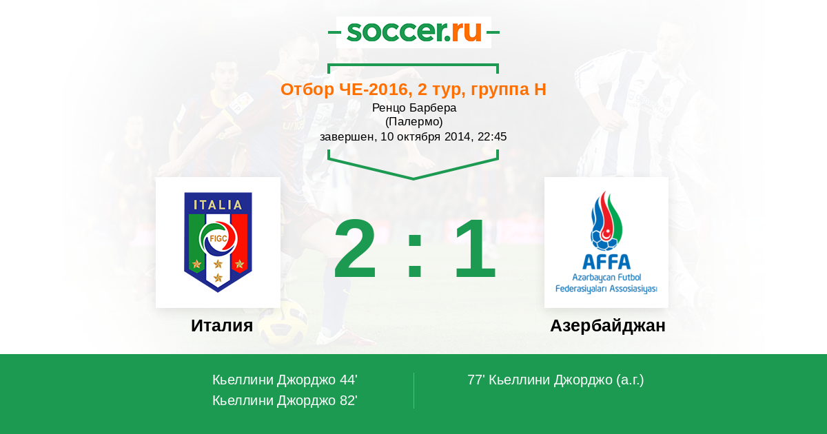 Протокол матча Италия против Азербайджан