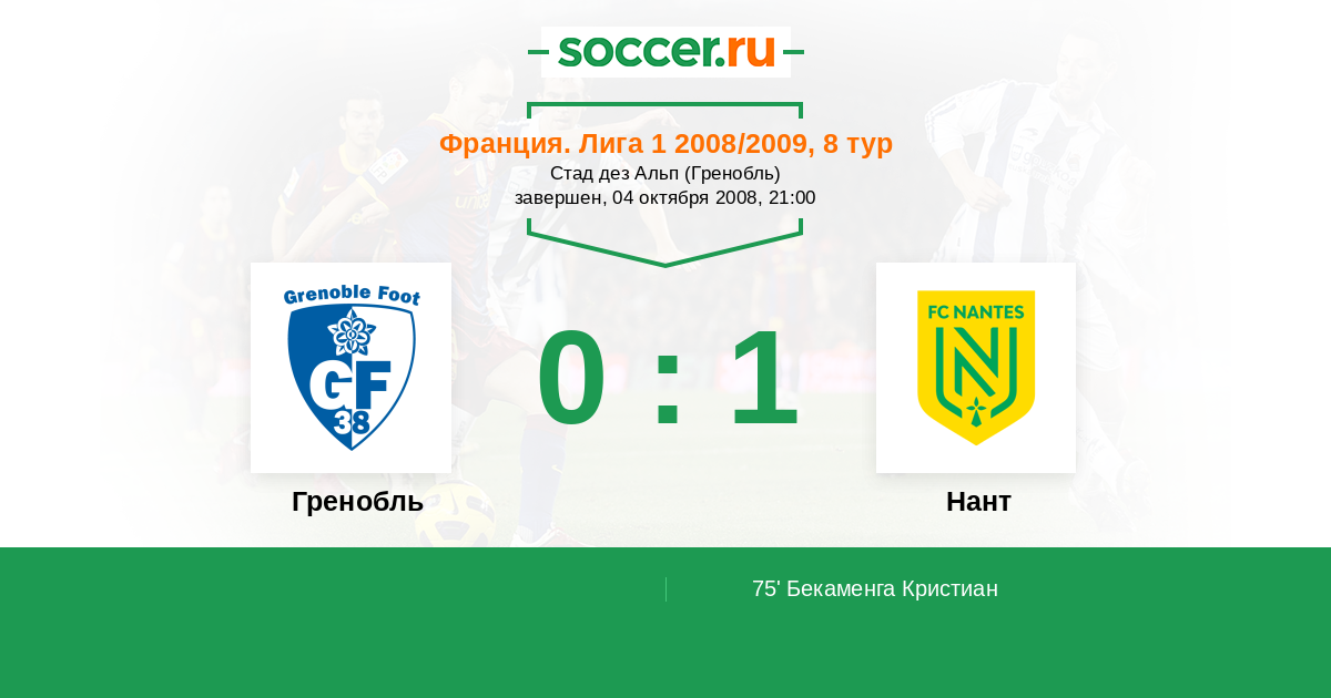 Протокол матча Гренобль против Нант