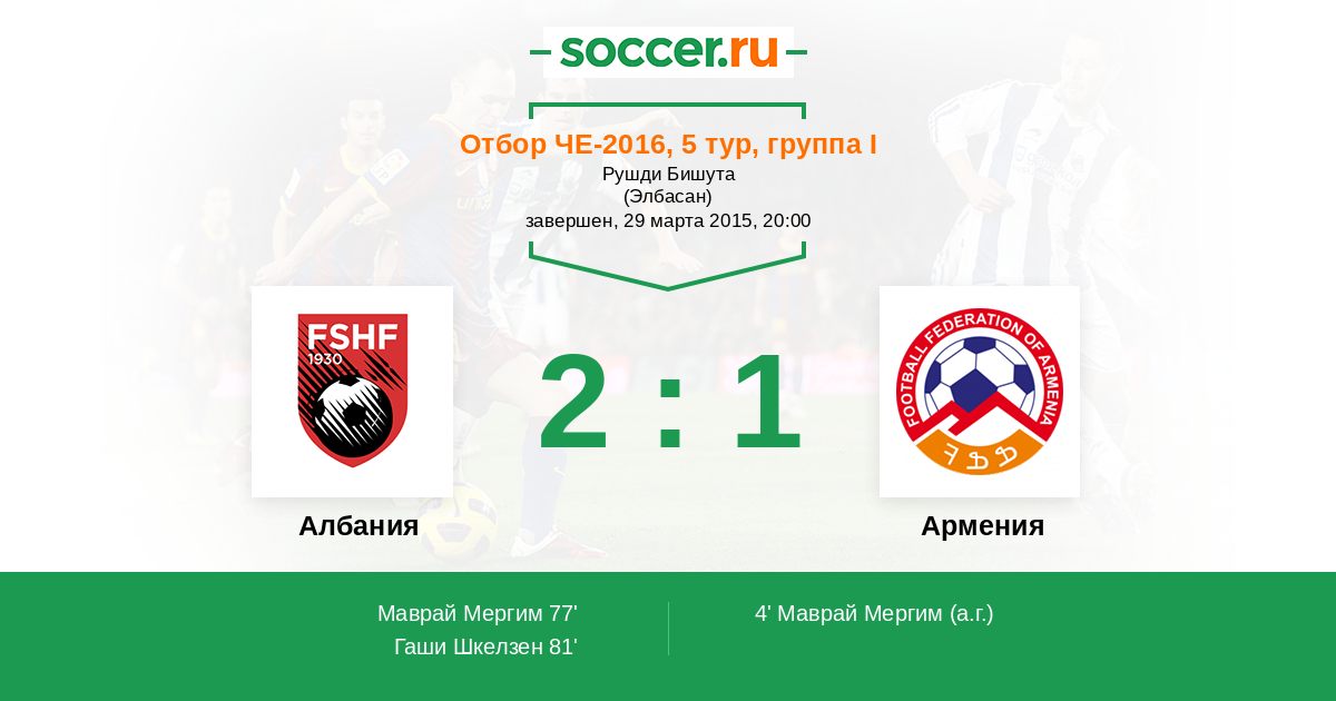 Протокол матча Албания против Армения