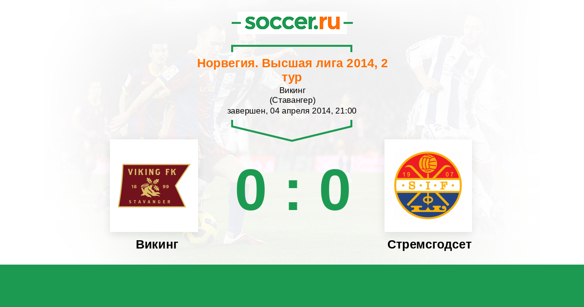 Норвегия. Высшая лига 22.04.2012 Стремсгодсет Логотип футбольный клуб Стремсгодсет (Драммен) 1:0 Логотип футбольный клуб Викинг (Ставангер) Викинг