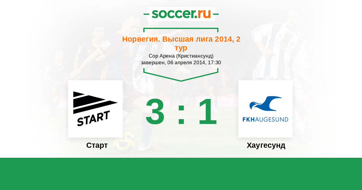 Норвегия. Высшая лига 24.04.2013 Хаугесунд Логотип футбольный клуб Хаугесунд 3:2 Логотип футбольный клуб Старт (Кристиансанд) Старт