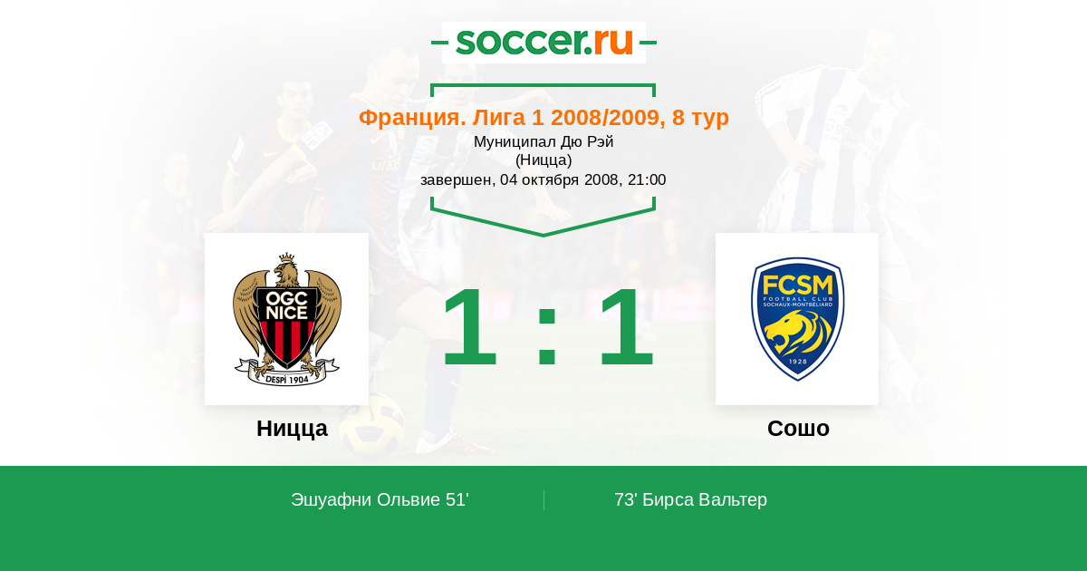Протокол матча Ницца против Сошо