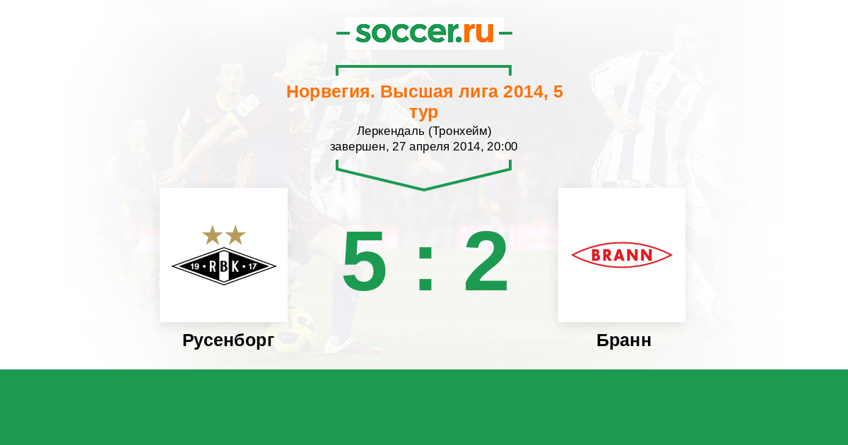 Норвегия. Высшая лига 17.08.2014 Бранн Логотип футбольный клуб Бранн (Берген) 3:1 Логотип футбольный клуб Русенборг (Тронхейм) Русенборг