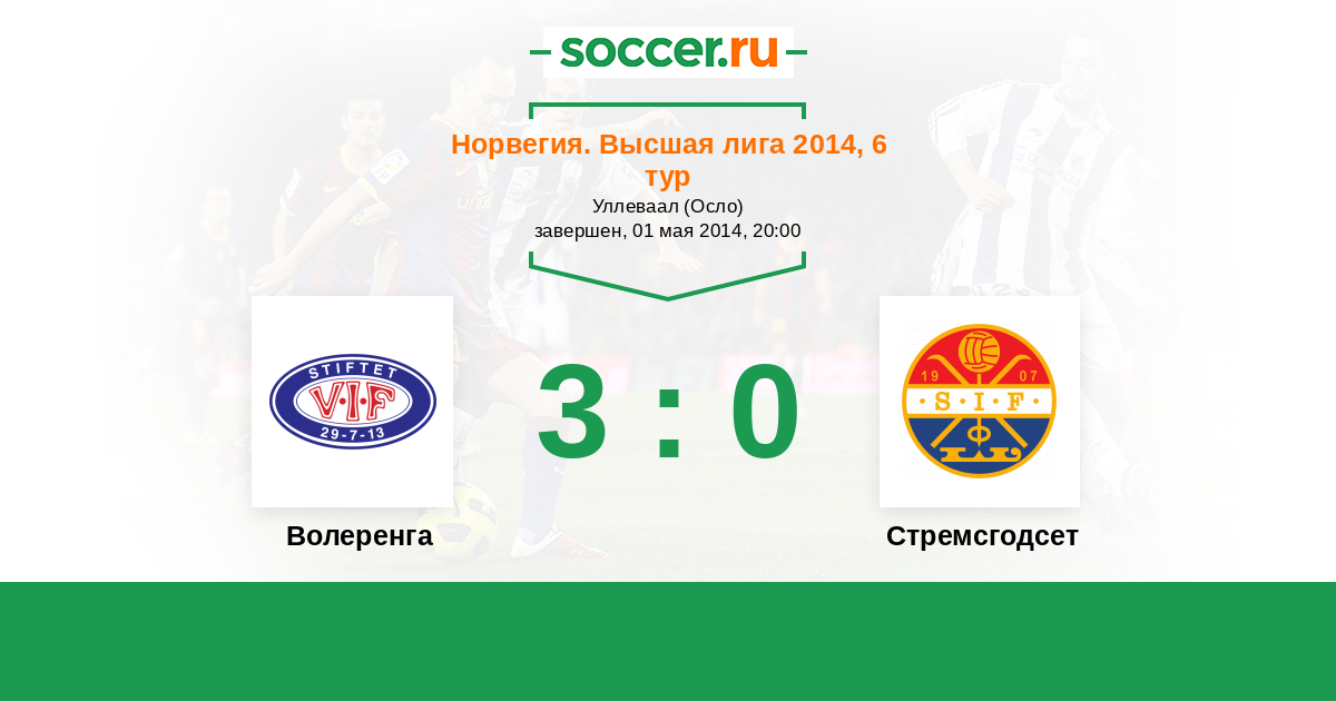 Норвегия. Высшая лига 19.07.2014 Стремсгодсет Логотип футбольный клуб Стремсгодсет (Драммен) 0:2 Логотип футбольный клуб Волеренга (Осло) Волеренга