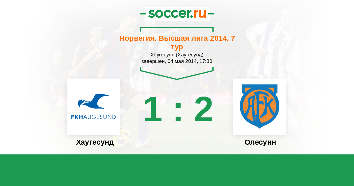 Норвегия. Высшая лига 16.05.2012 Хаугесунд Логотип футбольный клуб Хаугесунд 4:2 Логотип футбольный клуб Олесунн Олесунн