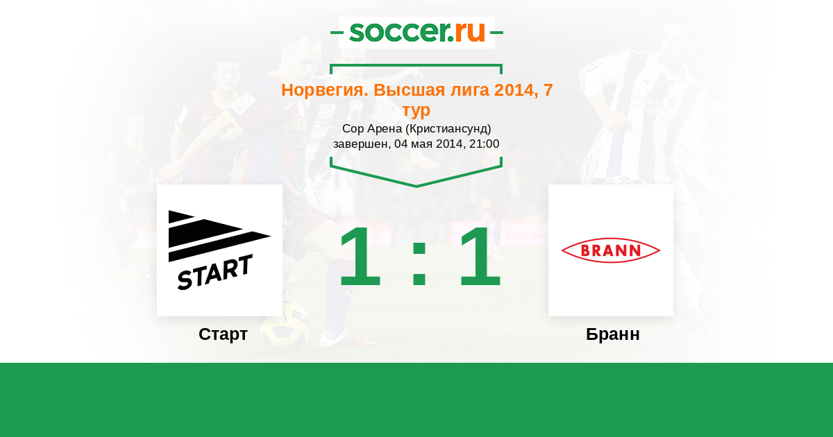 Норвегия. Высшая лига 05.05.2007 Бранн Логотип футбольный клуб Бранн (Берген) 2:2 Логотип футбольный клуб Старт (Кристиансанд) Старт