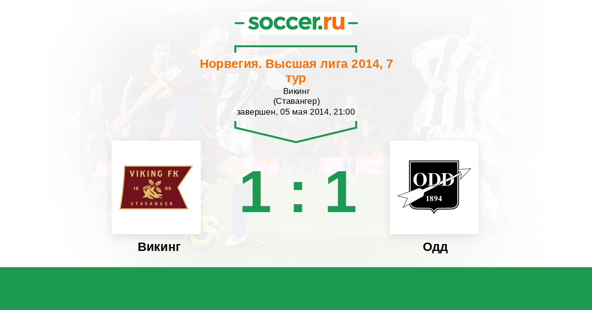 Норвегия. Высшая лига 10.05.2015 Викинг Логотип футбольный клуб Викинг (Ставангер) 1:1 Логотип футбольный клуб Одд (Шиен) Одд