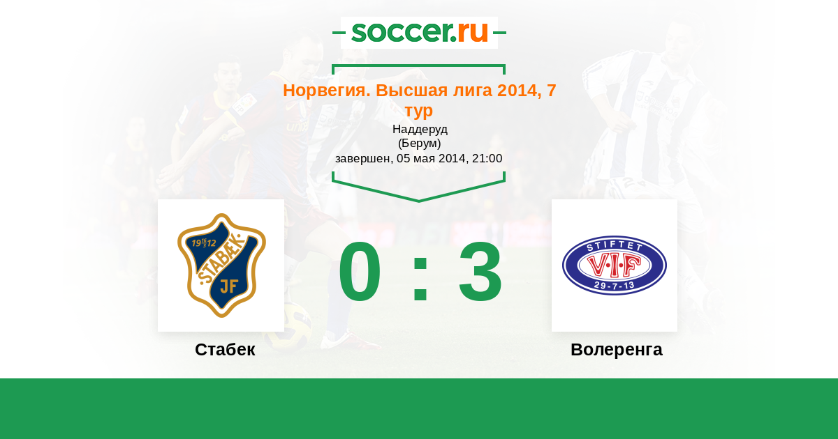 Норвегия. Высшая лига 29.07.2014 Волеренга Логотип футбольный клуб Волеренга (Осло) 3:2 Логотип футбольный клуб Стабек (Берум) Стабек