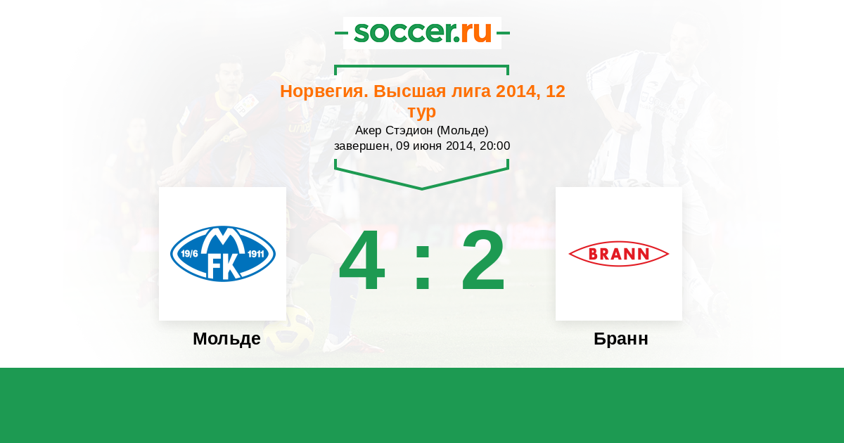Норвегия. Высшая лига 31.08.2014 Бранн Логотип футбольный клуб Бранн (Берген) 0:1 Логотип футбольный клуб Мольде Мольде