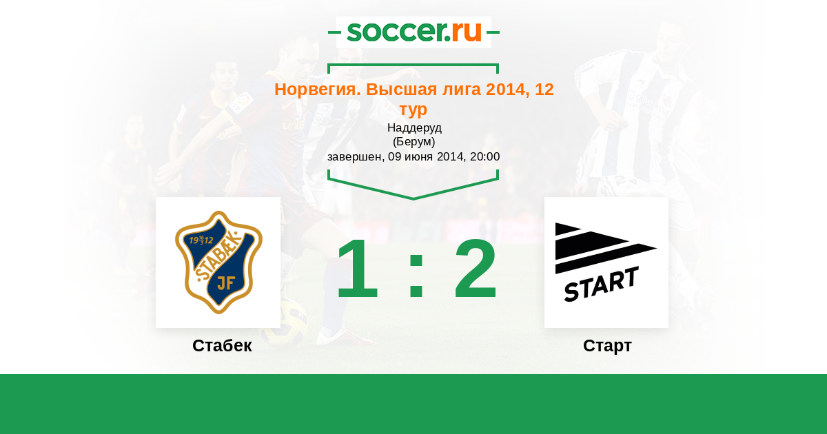 Норвегия. Высшая лига 21.06.2009 Стабек Логотип футбольный клуб Стабек (Берум) 5:0 Логотип футбольный клуб Старт (Кристиансанд) Старт