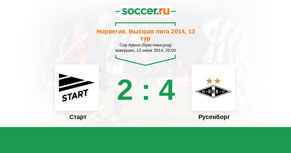 Норвегия. Высшая лига 10.08.2014 Русенборг Логотип футбольный клуб Русенборг (Тронхейм) 3:2 Логотип футбольный клуб Старт (Кристиансанд) Старт