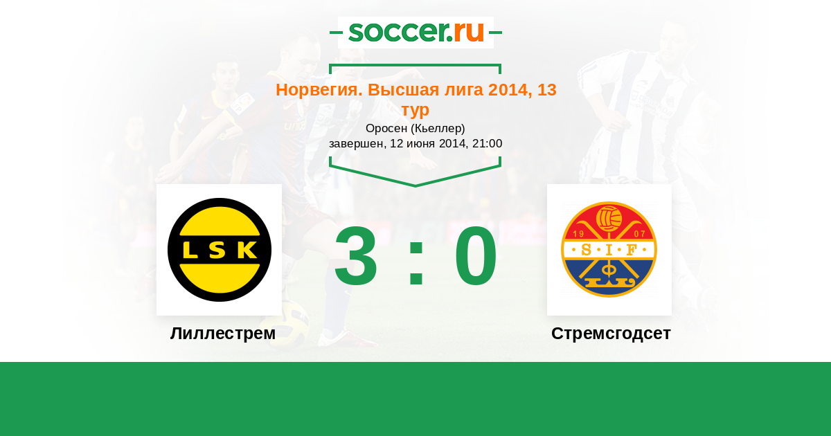Норвегия. Высшая лига 31.05.2015 Стремсгодсет Логотип футбольный клуб Стремсгодсет (Драммен) 2:0 Логотип футбольный клуб Лиллестрем Лиллестрем
