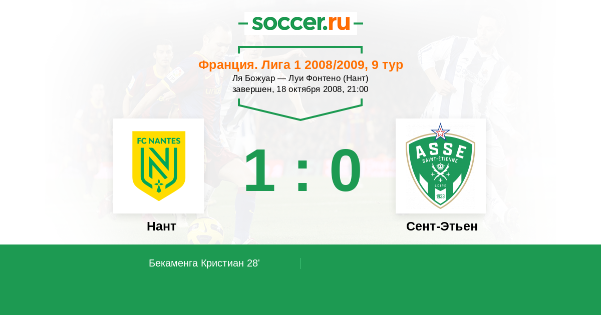 Протокол матча Нант против Сент-Этьен