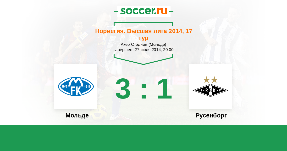 Норвегия. Высшая лига 04.05.2014 Русенборг Логотип футбольный клуб Русенборг (Тронхейм) 0:2 Логотип футбольный клуб Мольде Мольде