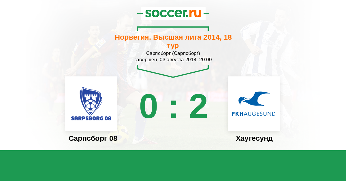 Норвегия. Высшая лига 12.06.2014 Хаугесунд Логотип футбольный клуб Хаугесунд 4:0 Логотип футбольный клуб Сарпсборг 08 Сарпсборг 08