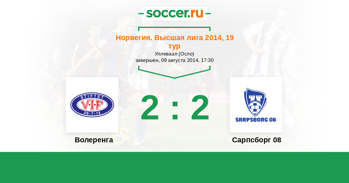 Норвегия. Высшая лига 29.07.2013 Волеренга Логотип футбольный клуб Волеренга (Осло) 5:3 Логотип футбольный клуб Сарпсборг 08 Сарпсборг 08