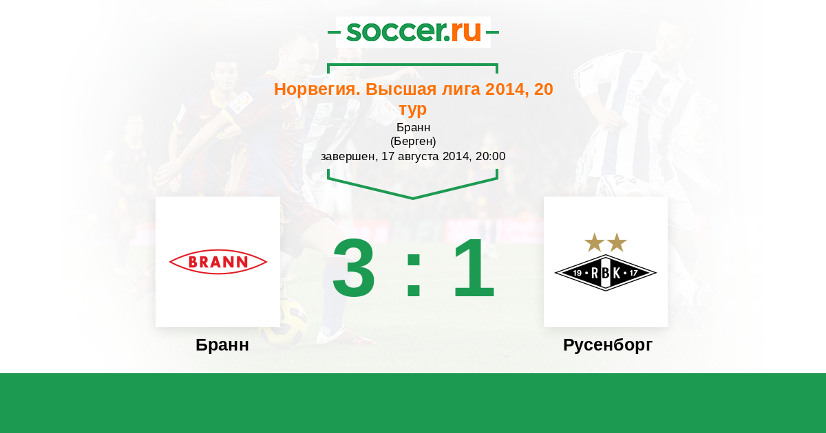 Норвегия. Высшая лига 27.04.2014 Русенборг Логотип футбольный клуб Русенборг (Тронхейм) 5:2 Логотип футбольный клуб Бранн (Берген) Бранн
