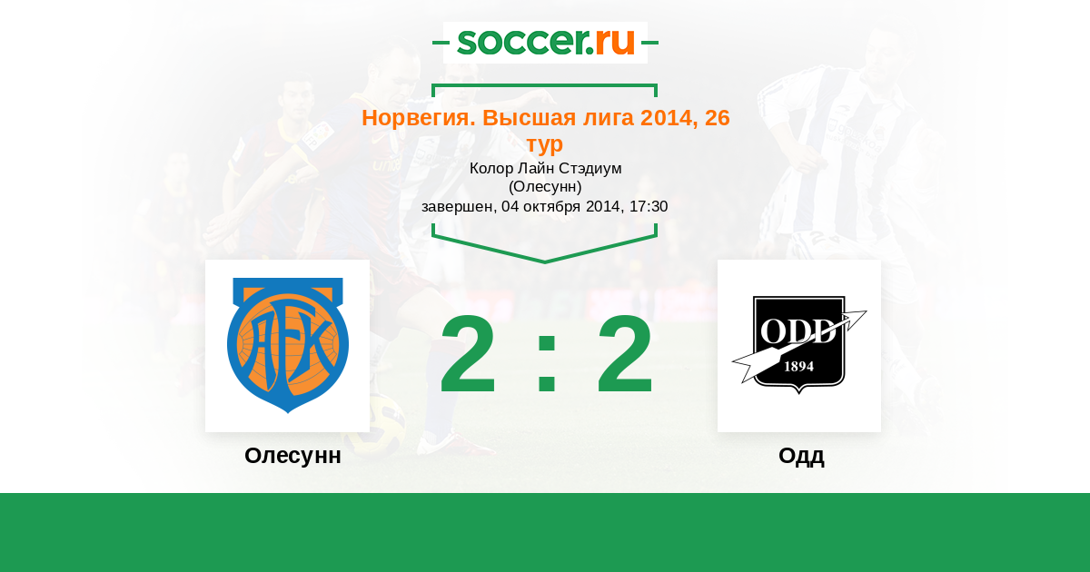 Норвегия. Высшая лига 20.05.2014 Одд Логотип футбольный клуб Одд (Шиен) 2:1 Логотип футбольный клуб Олесунн Олесунн