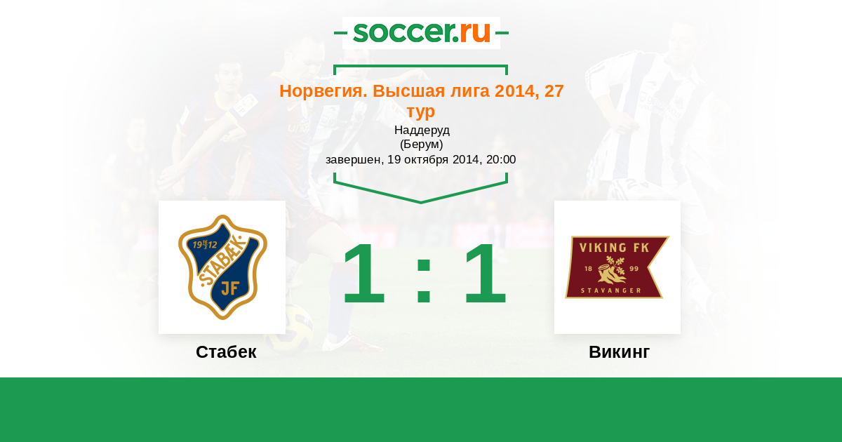 Норвегия. Высшая лига 12.06.2014 Викинг Логотип футбольный клуб Викинг (Ставангер) 4:1 Логотип футбольный клуб Стабек (Берум) Стабек
