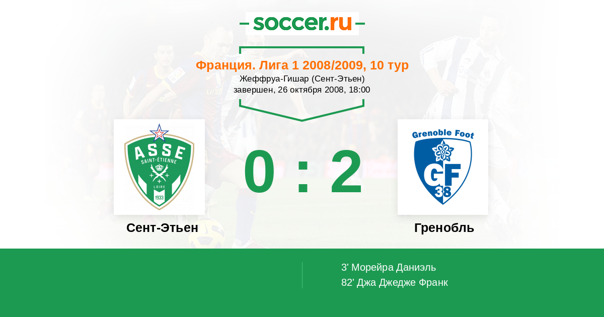 Протокол матча Сент-Этьен против Гренобль