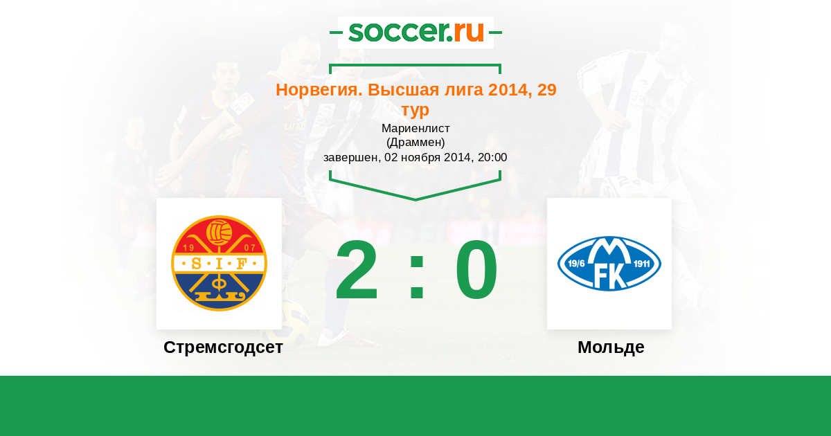 Норвегия. Высшая лига 21.10.2012 Стремсгодсет Логотип футбольный клуб Стремсгодсет (Драммен) 1:1 Логотип футбольный клуб Мольде Мольде