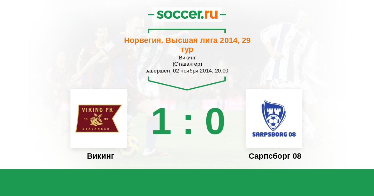 Норвегия. Высшая лига 10.11.2013 Викинг Логотип футбольный клуб Викинг (Ставангер) 2:1 Логотип футбольный клуб Сарпсборг 08 Сарпсборг 08