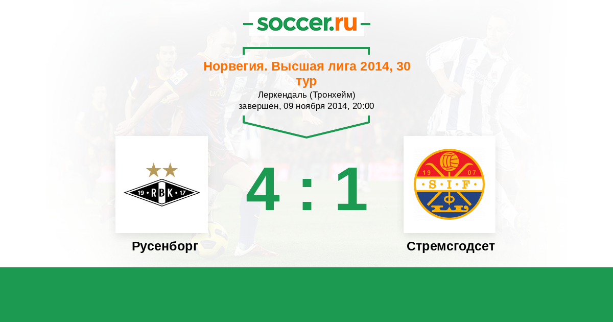 Норвегия. Высшая лига 24.05.2014 Стремсгодсет Логотип футбольный клуб Стремсгодсет (Драммен) 1:1 Логотип футбольный клуб Русенборг (Тронхейм) Русенборг