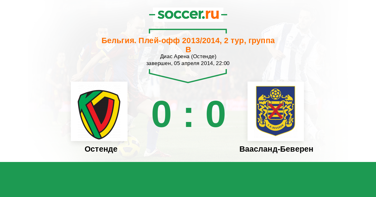 Бельгия. Про-Лига 03.05.2014 Ваасланд-Беверен Логотип футбольный клуб Ваасланд-Беверен 0:1 Логотип футбольный клуб Остенде Остенде
