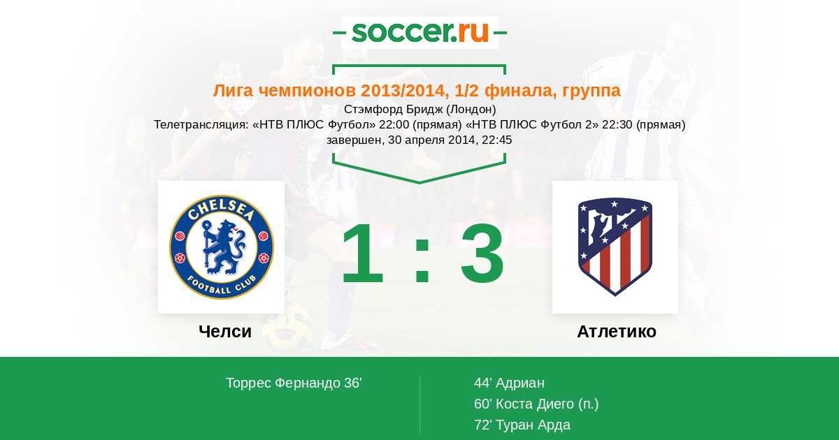Протокол матча Челси против Атлетико
