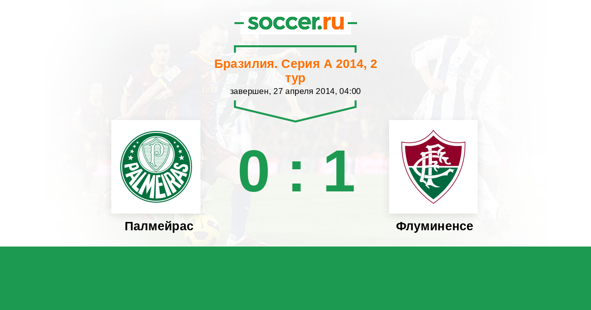 Бразилия. Серия А 14.09.2014 Флуминенсе Логотип футбольный клуб Флуминенсе (Рио-де-Жанейро) 3:0 Логотип футбольный клуб Палмейрас (Сан-Паулу) Палмейрас