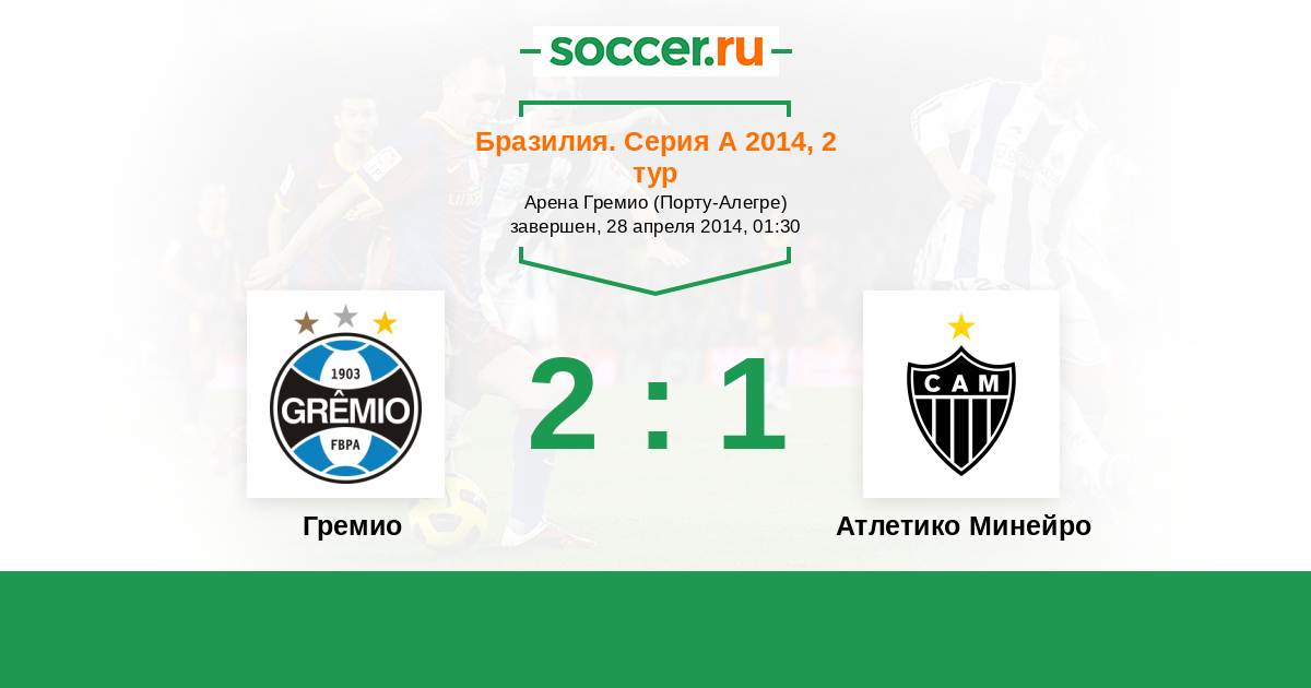 Бразилия. Серия А 15.09.2014 Атлетико Минейро Логотип футбольный клуб Атлетико Минейро (Белу-Оризонти) 0:0 Логотип футбольный клуб Гремио (Порту-Алегри) Гремио